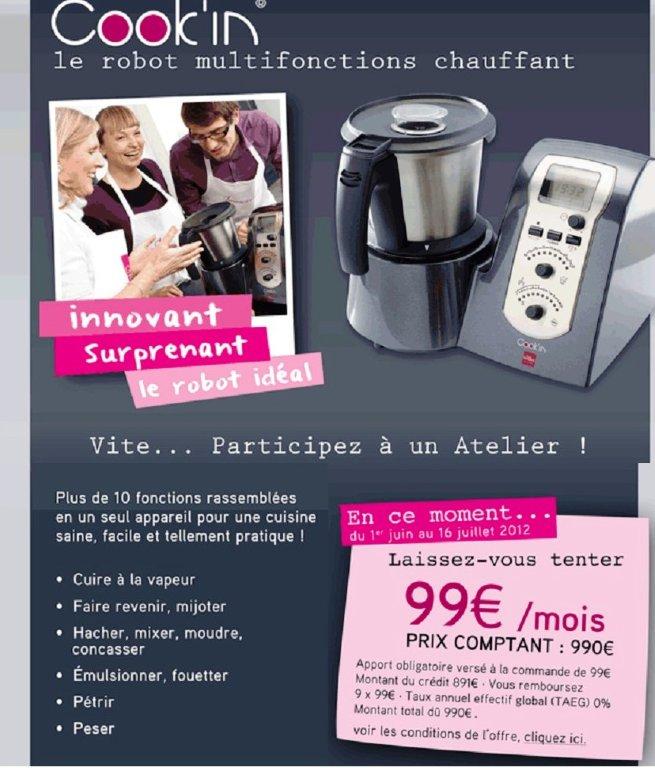Le Cook In, c'est le robot multi-fonctions qui permet de peser, pétrir, fouetter, couper (mixer, hacher, concasser, moudre) & cuire (à la vapeur, à l'eau, mijoter, faire revenir), ... bref, c'est un vrai assistant culinaire qui sait tout faire !