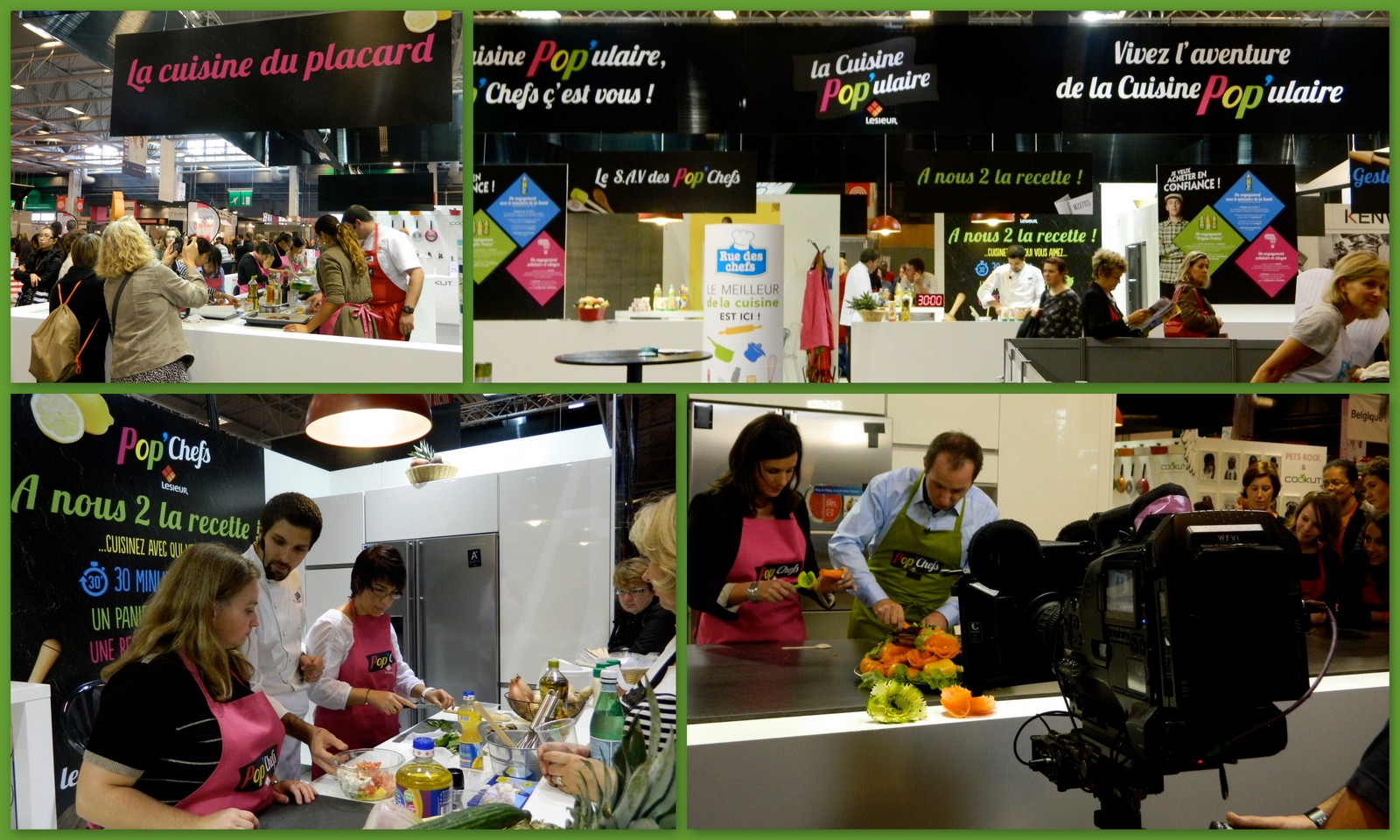 - avec Lesieur, THE partenaire du salon, avec son espace pour fêter la cuisine populaire Pop'Chefs de Lesieur; d'ailleurs, une partie de l'émission 100% Mag (diffusée le 19 octobre) a été tournée là, avec Faustine Bollaert & Jean-Philippe Doux. Les plus attentifs reconnaitront aussi Natacha de Ma cuisine sans gluten, en atelier de cuisine, tablier rose à gauche du Chef !